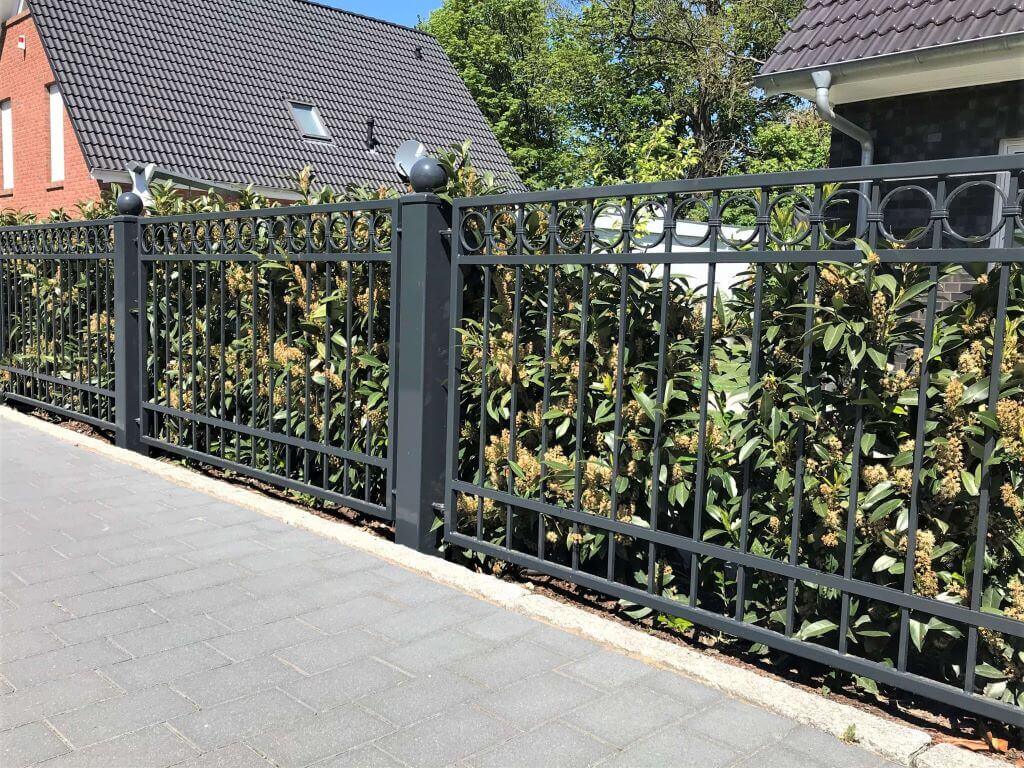 Egal, welches Zaundesign Sie suchen: Bei uns haben Sie die Möglichkeit, Ihren Schmiedezaun mit Tor oder ohne nach Ihren Wünschen zu gestalten. Mit einem unserer Zäune erhalten Sie ein echtes Kunstwerk, das Ihr Grundstück wie ein schöner Bilderrahmen umschließt und es visuell aufwertet. Dank fortschrittlicher Verarbeitungstechniken können wir Ihnen nicht nur maximale Individualität anbieten, sondern auch eine hohe Qualität, die Langlebigkeit und Sicherheit gewährleistet.